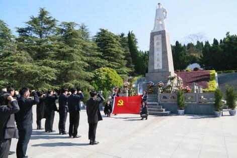 活动开始,全体党员面向烈士纪念碑庄严肃立,鞠躬默哀,党员代表向革命先烈敬献花篮,祭奠烈士英灵、寄托沉痛哀思,六合经济开发区党工委副书记、管委会主任赵久峰上前整理挽联,向为民族解放和人民革命事业献身的革命先烈致以深切哀思和崇高敬意。